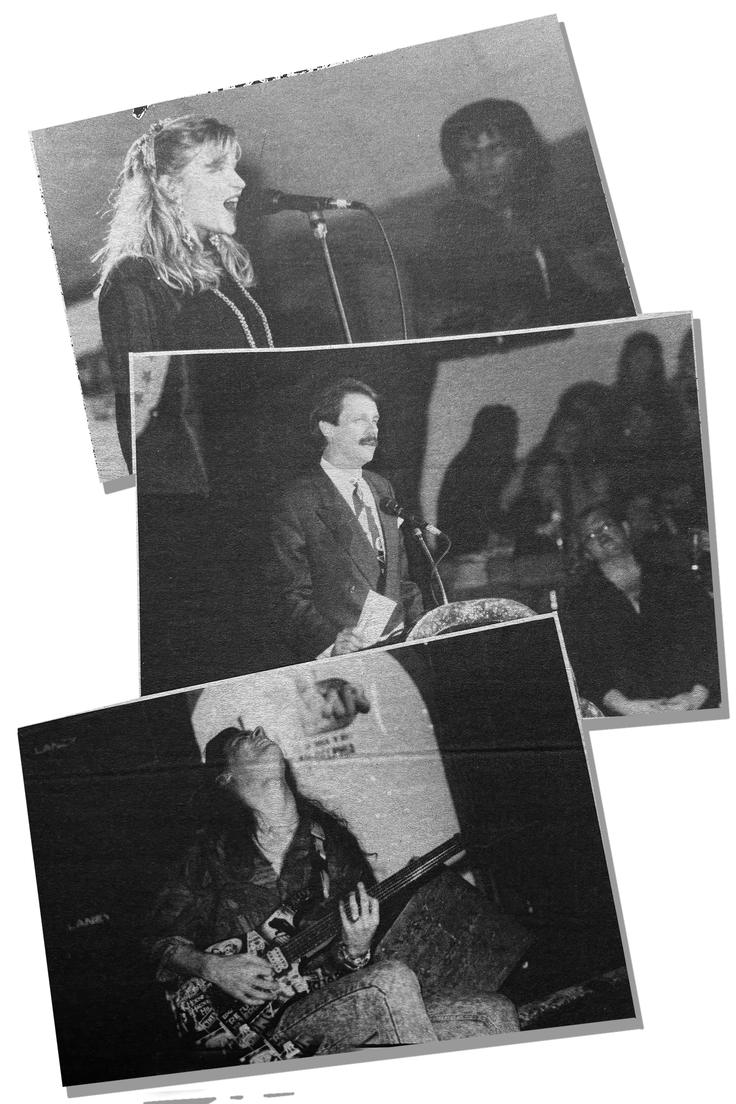 (Top) Best Female Vocalist winner Bekka Eaton during the Daves’ live performance. (Center) Evening Magazine’s Ray Murray presents two awards. (Bottom) Teenage guitar whiz Ritchie Kotzen grinds his axe for all to see at the Chestnut Cabaret. (Photos by Andy Rash).